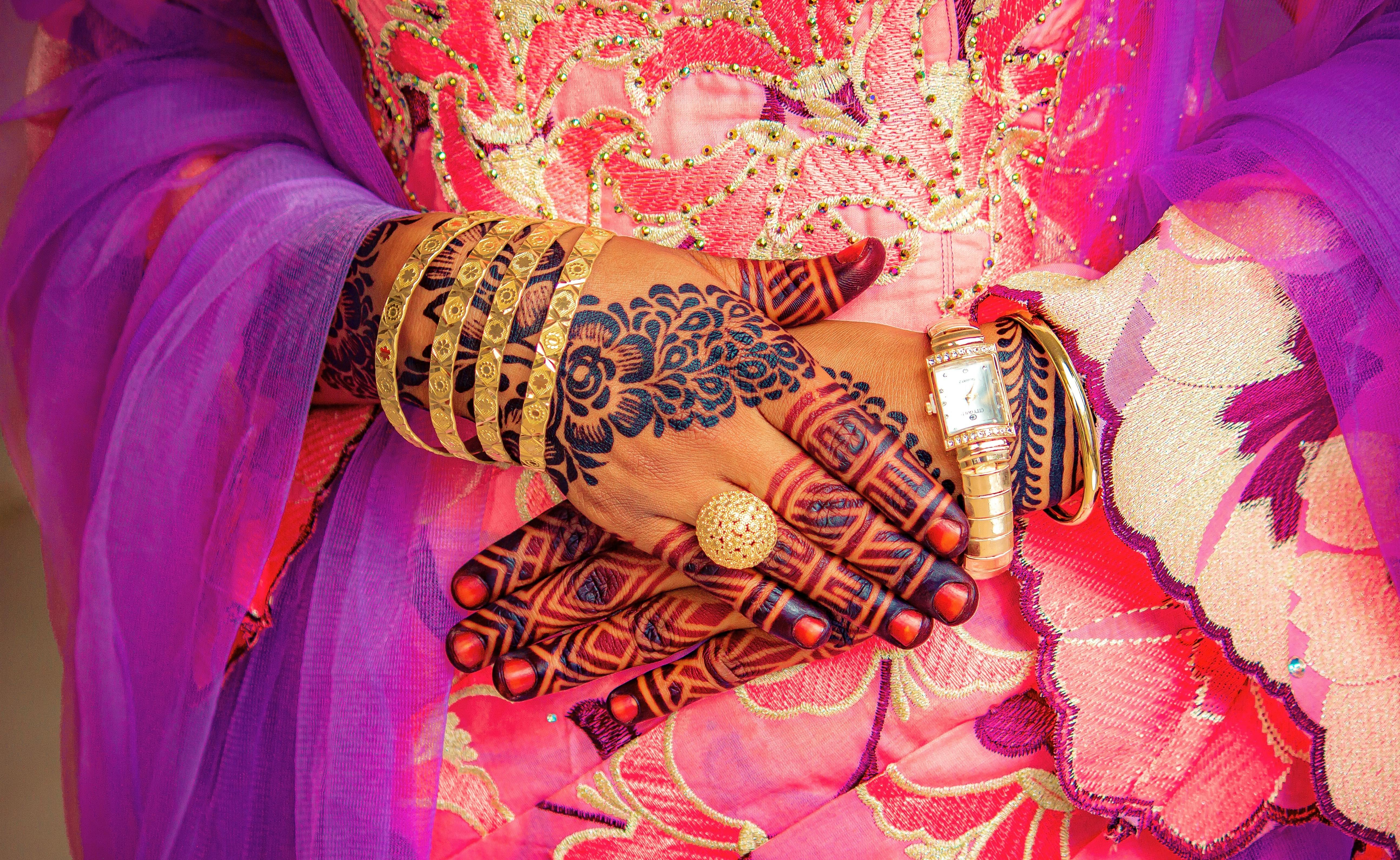 Bridal mehndi is a traditional and beautifully detailed form of henna applied to a bride's hands and feet.